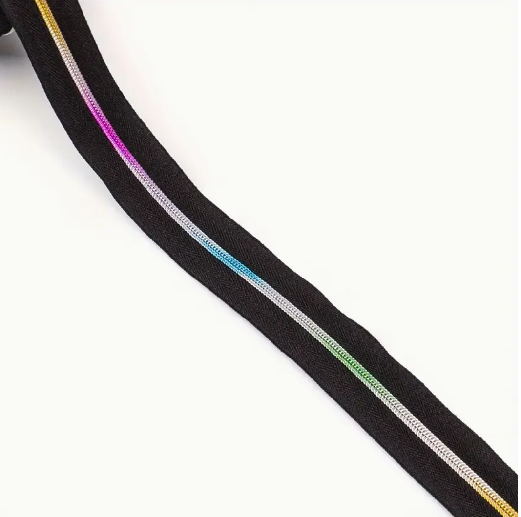 11 Yards of Black Nylon Zipper Tape with Colorful Teeth, with Pulls