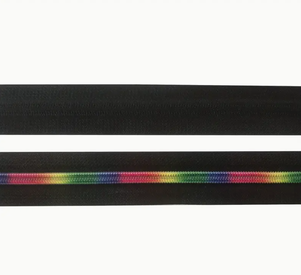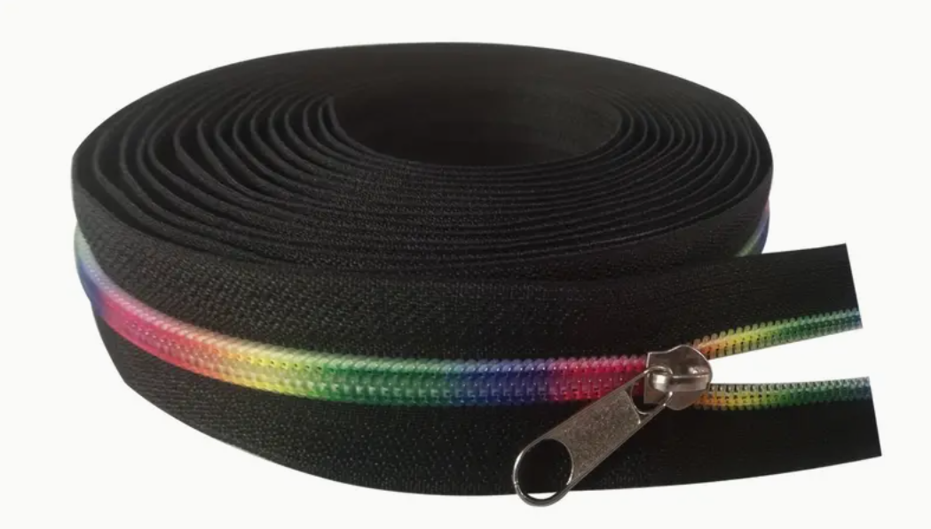 11 Yards of Black & Rainbow Zipper Tape with Pulls
