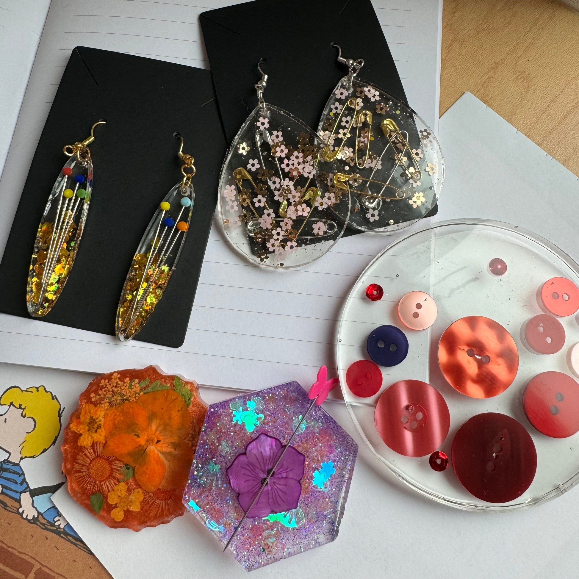 - Complete DIY Set – Includes 250g high-quality UV resin, an upgraded foldable UV lamp, molds, bezel pendants, chains, key chains, earring hooks, and essential resin tools.